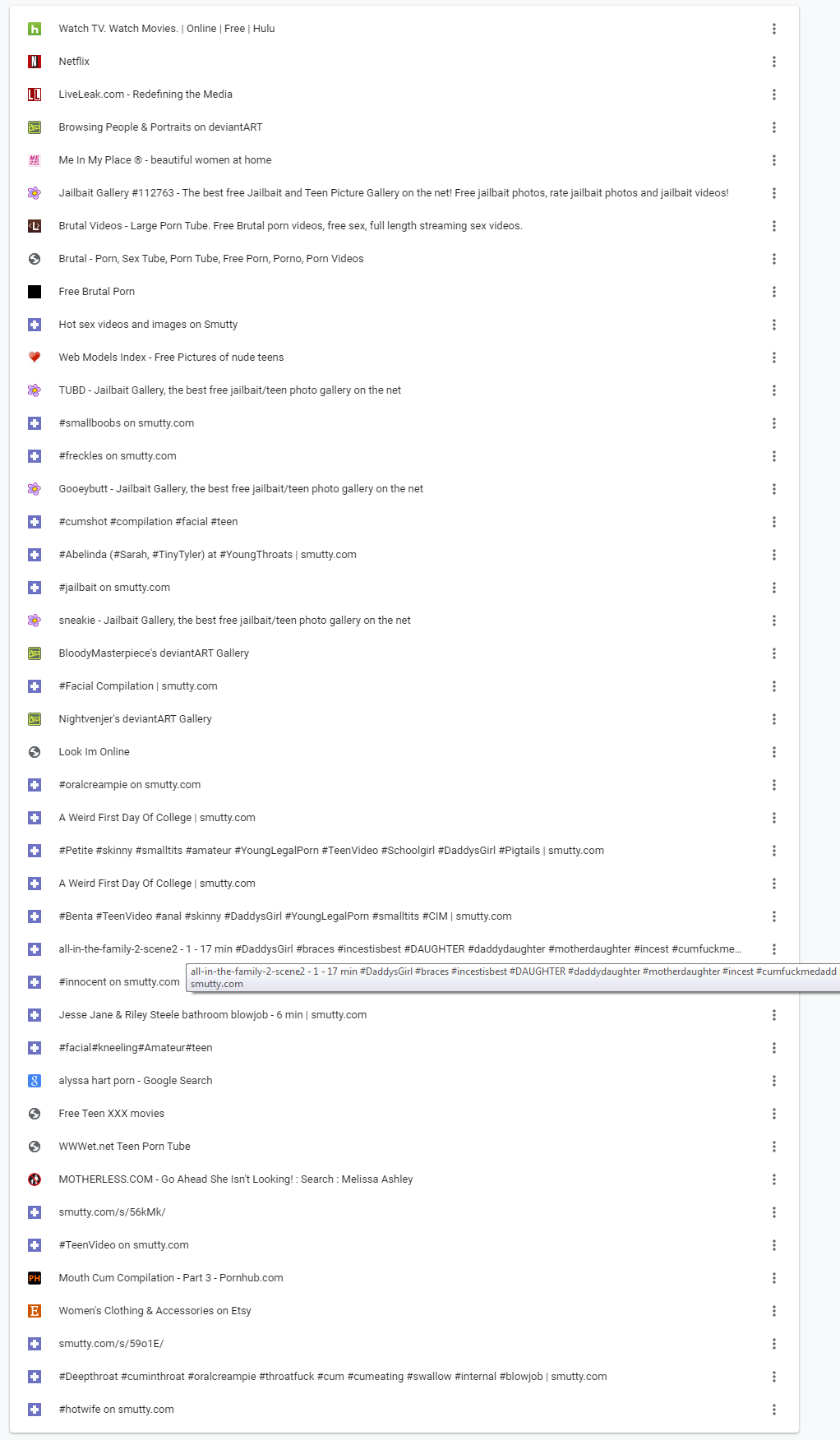 oh dear. He had bookmarks for things like #DaddysGirl, #smalltits and #innocent on websites called things like jaiIbaitgallery.com. It certainly seems as though Tony has certain inclinations. Finding this made me want to throw up